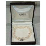 Description: Authentic 16inch Pearl Necklace with 14k Gold safety clasp. In original display box from LeibFarth's - The Diamond Store - Ashland Ohio.