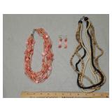 Description: Mother of Pearl Pink necklace & Earring set and a beautiful African wood necklace.