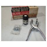 Description: STONEY TATTOO OUTFIT-animal tattoo kit with press and all numbers pictured along with a bottle of ink.