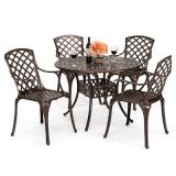 5-Piece All-Weather Cast Aluminum Patio Dining Set w/ 4 Chairs, Umbrella Hole, Lattice Weave Design -Backyard gatherings should be as relaxing as possible. Experience the comfort of this 5-piece dining set which includes 4 contoured chairs with curved armrests. The beautiful lattice-weave design adds an elegant touch wherever it's placed, complementing any outdoor decor. For sunny and warm days, you can even place an umbrella in the middle to stay cool. FEATURES: ALL-WEATHER, RUST-RESISTANT DESIGN: This beautiful 5-piece patio dining set is made to last with all-weather, rust-resistant cast aluminum to endure any weather COMFORTABLE CONTOURED CHAIRS: Each chair has a contoured shape and curved armrests for exceptional comfort as you gather with friends and family BEAUTIFUL LOOK: The elegant lattice-weave design looks beautiful in any outdoor setting, like your patio, backyard, or by the poolside UMBRELLA HOLE: Built with a 2.5-inch diameter umbrella hole in the center of the table to add a patio umbrella for shade (umbrella not included) IN FACTORY PACKAGING. RETAIL: $ 799.99 (293) |