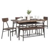 6-Piece 55in Modern Home Dining Set w/ Storage Racks, Rectangular Table, Bench, 4 Chairs -Enjoy modern dining and functional storage all in one. This 6-piece dining set seats up to 6 with a spacious tabletop for family meals and friendly gatherings. The simple design and beautifully finished surface blend seamlessly into any setting. Crafted with convenience in mind, the table and bench each have a storage rack to hold accessories like table mats, coasters, or seat cushions. Once you've finished dinner, switch out the table mats for some board games from the storage rack and enjoy some friendly fun! FEATURES: Modern 6-piece dining set furniture with a dining table, 4 chairs, and rectangular 2-person bench 2 storage racks, one under the table and one under the bench to hold mats, coasters, cushions, games, and more Seats up to 6, perfect for family meals or gathering in your kitchen or dining area Crafted with engineered wood and durable, rust-resistant steel framing for long-lasting use Easy-to-clean, finished tabletop and seats to easily wipe away messes IN FACTORY PACKAGING. RETAIL: $ 433.99 (79) |