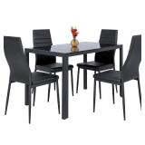 5-Piece Kitchen Dining Table Set w/ Glass Top, 4 Faux Leather Chairs -Upgrade your living space with this simple yet versatile dining set. The timeless design of the set will add elegance to any kitchen or dining area. With an easy-to-clean tempered glass tabletop and 4 metal chairs with tufted cushioning, it ensures comfort and long-lasting use. Make this set a mainstay in the home for countless family gatherings! FEATURES: Modern, 5-piece set adds a sophisticated look to any dining area Complete with an elegant, rectangular table and 4 high-quality dining chairs Chairs feature a curved backrest and tufted faux leather cushioning for comfort Seats up to 4 people so your family can gather for meals together Crafted with a tinted, glass tabletop and a rust-resistant, steel frame for long-lasting use IN FACTORY PACKAGING. RETAIL: $ 317.99 (290) |