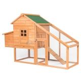 66in Outdoor Wooden Chicken Coop w/ Nesting Hen House Poultry Cage -Give your little animals a new place to call home with this 66-inch chicken coop. A multifunctional design acts as a home, nesting box, and backyard run for rabbits, chickens, ducks, and other poultry. Designed with a sliding access door and ramp, your animals easily can come and go while having easy access to food and water through the 2-section nesting box. This durable coop is sure to provide small animals with plenty of living space. FEATURES: Built with multifunctional design. Serves as a home, nesting box, and backyard run. Houses rabbits, chickens, ducks, and more. Sliding access door and ramp. 2-section nesting box. Easy access to food, water, and extract eggs. Capacity: 3-5 chickens (depending on size) IN FACTORY PACKAGING. RETAIL: $ 268.99 |