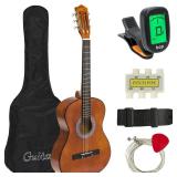 30in Kids Classical Acoustic Guitar Beginners Set w/ Carry Bag, Picks, E-Tuner, Strap -PERFECT FOR BEGINNERS: The small design of this classical acoustic guitar is easy for kids to use, and perfect for adults who want a small beginner guitar HIGH-QUALITY GUITAR DESIGN: Made with low-action strings to prevent finger straining and a compact 30-inch body to let beginners to learn easily BEAUTIFUL TONE: Nylon strings and the classical-style body create a warm and resonant sound, with smooth tuning pegs for easy tuning EXTRA ACCESSORIES: Includes a gig bag, digital clip-on tuner, guitar pick, a guitar strap, pitch pipe, and replacement guitar strings so you have everything you need. IN FACTORY PACKAGING. RETAIL: $ 57.99 |