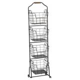 Ferme 4-Tier Metal Floor Standing Fruit/Home Storage Market Basket, Large, Antique Black. Rack is crafted from high grade, structural carbon steel for long lasting beauty even under rigorous use, and has an attractive antique Black brushed copper finish. The Acadia wood handle provides an easy way to carry or move the rack. Measures 51 x 13 1/2 x 11 1/2 inches. Wipe clean with a damp cloth. In Previously Opened Retail Packaging. Please Preview. Retail $89.99 |