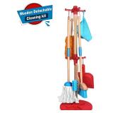 Kids Cleaning Set 7 Piece - Wooden Detachable Toy Cleaning Set. Realistic Wooden Detachable Cleaning Toys - This colorful, kid sized set looks just like the real thing and includes a wooden pretend play broom, mop, duster, brush, and organizing stand - Adult Assembly Is Required In Previously Opened Retail Packaging. Please Preview. Retail $29.99 |