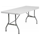 Flash Furniture 6-Foot Granite White Plastic Folding Table. Gather family and friends around for delicious meals or for intense game nights on this 6' long folding table that can accommodate up to 8 people. Overall Size: 30-Inch W x 72-Inch D x 29-Inch H. NEW in Retail Packaging. Please Preview. Retail $94.86
