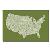 US City Map VI by Michael Tompsett, 16x24-Inch Canvas Wall Art. This ready to hang, gallery wrapped art piece features a map of the United States with cities in text. Art and design were always Michael's favorite subjects at school. He was fortunate to land a job as a graphic designer at one of London's most prestigious publishing companies. After 12 years Michael Topsett made the decision to pursue a full-time career creating his own work. NEW in Retail Packaging. Please Preview. Retail $74.99