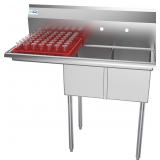 KoolMore 2 Compartment Stainless Steel NSF Commercial Kitchen Prep & Utility Sink with Drainboard - Bowl Size 12" x 16" x 10", Silver, Left HEAVY DUTY STAINLESS STEEL - Built with high quality durable 304 type 18 gauge stainless steel which is rust and corrosion resistant and will withstand the high volume fast pace commercial kitchen MAXIMUM EFFICIENCY - Two 12” x 16 bowls means that 2 kitchen staff are able to comfortably work simultaneously to prep, rinse, wash or thaw, overall dimensions 43”L x 22”W x 44. 5”H LARGE DRAINBOARD - With the 16” left side drain board you will have lots of useful space to place food while prepping or for drying dishes, it has a slanted surface to drain excess water ADJUSTABLE BULLET FEET - The 1 1/2” plastic bullet feet allow you to level the sink and protects your floor from scratches. For optimal stability, the sink should be secured to a wall. HIGH BACKSPLASH AND RAISED EDGES – The 10” backsplash with 8" center holes for faucet mount (not included) will keep walls dry and clean while the raised edges will prevent splashes and overflow NEW! In original packaging! NO REFUNDS once item has left the pickup location. Retail price $499.00 |