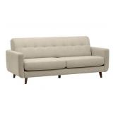Mid Century Sofa, Linen Upholstery With Tufted Back Pillow, Shell, White, Sofas, by eFurnish Impress your friends with this mid-century modern style. The u-shaped, curved silhouette of this sofa, accented by hand tufting and buttons on the back pillow, will look smart in your living room. Hardwood frame with solid beech wood legs Mid-century modern An attractive, practical piece to brighten up any space Simple assembly; just attach legs and backNEW! In original packaging! NO REFUNDS once item has left the pickup location. Retail price $939.90 |