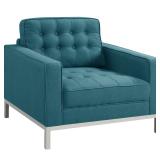 Iconic Home Straight Leg Club Chair, Blue A fresh take on a traditional design, this club chair is a statement - making piece of beautiful design. Rich linen upholstery is tufted all over the inside of the piece, a beautiful design detail that can be seen from any angle in a room. This square arm club chair sits regally atop silver-tone metal legs and pairs beautifully with the Sterling sofa. Suited for both traditional and contemporary design environments. Color: Blue. NEW! In original packaging! NO REFUNDS once item has left the pickup location. Retail price $503.99 |