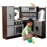KidKraft Ultimate Corner Play Kitchen with Lights & Sounds, Espresso Made for the ultimate chef in your home, this upscale corner play kitchen is a little chef's dream come true. Realistic interactive features bring the imaginative environment to life with burners that light up and a super fun ice maker that makes realistic sounds and flashing lights! Kids will be thrilled to cook an imaginary meal for the whole family! The Ultimate Corner Play Kitchen is even large enough for multiple kids to join in the fun! Age Range: 3+ Speckled granite style counter top Knobs turn an click Convenient storage space below sink Sink with faucet and taps that turn Stove-top burners have lights and sounds Ice maker has lights and sound Requires AA batteries Large enough that multiple children can play at once Refrigerator, freezer, microwave, oven and dishwasher doors all open and close Dimensions: 42.52"L x 31.97"W x 36.65"H Materials: MDF, Solid Wood Country of Origin: China NEW! In original packaging! NO REFUNDS once item has left the pickup location. Retail price $193.29 |