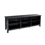 Rockpoint Plymouth Wood TV Stand Storage Console, 58", Midnight Black Bring bold, simple beauty and everyday functionality to well-loved living spaces with this Rockpoint wood TV stand storage console. Measuring 58 inches long, the media console nicely accommodates almost any flat panel TV up to 60 inches. In addition to its smooth tabletop surface, the notable piece provides adjustable shelving with a mid-line divider that ultimately creates four cubby-style storage spaces. Store anything from gaming consoles and stereo equipment to DVDs, games, books, magazines, or extra throw pillows. The shelves offer ample storage space and are height adjustable for optimal versatility. The Rockpoint wood TV stand storage console requires some assembly (step-by-step instructions are included), and it measures approximately 58 by 15-3/4 by 23 inches (LxWxH). NEW! In original packaging! NO REFUNDS once item has left the pickup location. Retail price $133.78 |