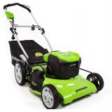 Greenworks 21-Inch 13 Amp Corded Electric Lawn Mower MO13B00 Brushed Push Mower 2507702 is brand new. 13 Amp Electric Motor delivers enough power to cut through the toughest grass. Durable steel 21-Inch cutting deck gets the job done quicker and more efficiently. 3-in-1 feature provides multiple options for grass clippings from rear bagging, side discharge and mulching capabilities for versatile needs. 7 position height adjustment offers a range of cutting height from 1 1/2-Inch to 3 3/4-Inch for the perfect cut on all grass types. Wide 10-Inch rear wheels and 7-Inch front wheels. Please lift the rear discharge cover to find the mulching plug. Weight: Â 56 lbs. NEW! In original packaging! NO REFUNDS once item has left the pickup location. Retail price $213.47 |