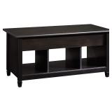 Sauder Edge Water Lift Top Coffee Table, Estate Black finish Top lifts up and moves forward to create versatile work surface Hidden storage beneath Top Open shelves for additional storage and display. Finished on all sides for versatile placement Estate Black Finish Engineered wood Construction Assembled dimensions: L: 41. 102" x W: 19. 449" x H: 19. 094", In opened factory packaging. See at preview. Retail price $130.92 |
