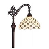 Amora Lighting Tiffany Style Floor Lamp Jeweled Adjustable White Cream Reading Standing Antique Vintage 62" Tall Stained Glass Living Room Bedroom Decor Gift AM028FL12, 12 Inch Diameter **BRAND NEW