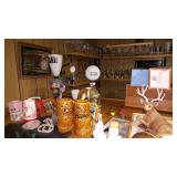 MANY UNIQUE LAMPS, OIL LANTERS, WONDERFUL WOOD SHIPS, BAR LAMPS, DECANTERFS AND OTHER BAR MEMORIBILIA, VINTAGE MUSICAL INSTRUMENTS INCLUDING: