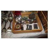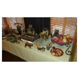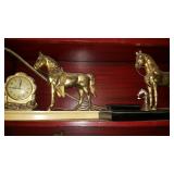 ANTIQUE CLOCKS, BRONZE, BRASS, WOODEN ANIMAL STATUES