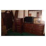 FURNITURE INCLUDING NICE CURIO CABINETS, DINNING TABLE AND CHAIRS, LEATHER FURNITURE, BEDROOM FURNITURE, OFFICE FURNITURE, PAINTED BUNKBEDS, FLAT SCREEN T.V.’S