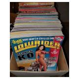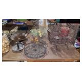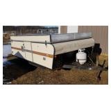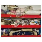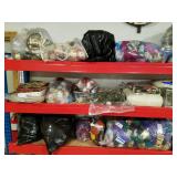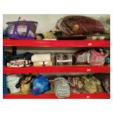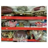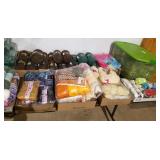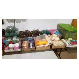 Stoneware, vintage butcher block, beer advertising, Coca Cola advertising, lighters, bottle openers, brass bed, day bed, wood trunk, chest freezer, patio set, dining room table and chairs, Husqvarna leaf blower, Starcraft pop-up camper, (6) 16ft studio lighting rails by Photographic Machine Co and lighting, magazines, milk glass, numerous skeins of yarn, bedding, rugs, home decor, misc. household and holiday decorations. More items being sorted.