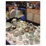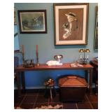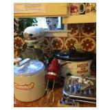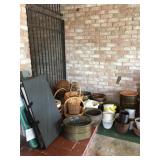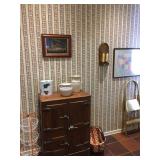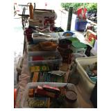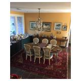 contents of nice home with quality furnishings Art works by: Mannes Lichtenberg, James March Phillips, J. Baxter Refrigerator, washer, dryer, Freezer Chandeliers for sale, Dining room table & 8 chairs, Heritage side board, game table & chairs, king bed, chairs, lamp tables, pair John Widdicom commode chests, Wood ice box , Butcher block top kitchen table, 4 Bamboo chairs, , Antique kitchen cabinet, wood wall/craft shelves, Singer Treadle sewing machine, Naumann hand crank sewing machine with wood lid, pair Baker tables, Baker secretary desk, settee, 7 wood & cane chairs, Painted red painted table, yellow painted table, 2 long bench tables, large brass, wood, glass cocktail table, Stationary Bike, lawyer/stack bookcase Lenox, Llardo, Beleek, Wedgwood, Baraccat, Waterford crystal, Asian rugs, Lamps, Linens, Books, Hanging Lamp, Craft supplies & fabrics & notions, Bose radio, Mexican Folk Art, Indoor plants as well as outdoor potted plants, Kitchen Aid mixer, Kitchen appliances & cookware, vacuum, Luggage, Flatware, Brass wall sconces, Cup & Saucers, Gucci briefcase, Gorhman tea set, large wall mirrors, flat screen TV, Some nice ladies clothes, Linen shirts, purses, jewelry signed Napier, Coro, Monet, Trifari, AK. LC, NAOT shoes Garage: tools, wagon, garden tools, Patio black iron chairs, tables, cart, push mower, Webber grill, large garden table, shepher hoops |