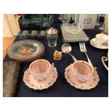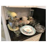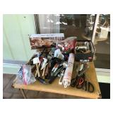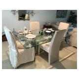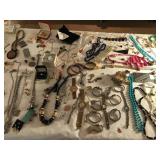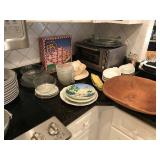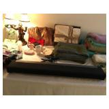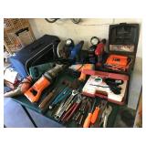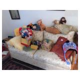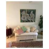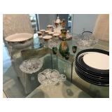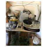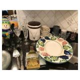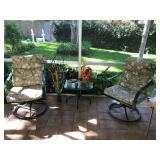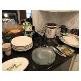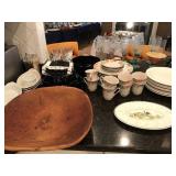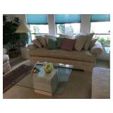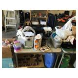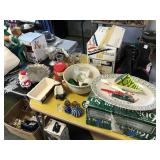 Sofa, loveseat & chair set, 4 modern dining chairs, china cabinet, modern coffee & end tables, jewelry, mounted dolphin, set of silver plate, Old Country Rose & Block china, Chinese nest of tables, lamps, mirror, neon Coors sign, prints, cut glass, patio set, extra chairs & tea cart; Kitchen Aid mixer, records, gas edger, power & hand tools, a lot of linens & kitchenware |