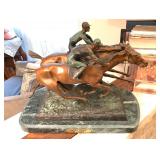 - Bronze Sculpture Pair of Racehorses Photo Finish by Antoine Louis Barye on Marble Base