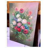 - Framed Oil Painting Garden Scene signed Blondette Malone