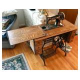 - Singer Treadle Sewing Machine in Oak Cabinet