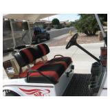 Two soft camel-color leather sofas, Custom-made full wall display cabinet with glass cupboards and lights on both levels, 2 casual upholstered recliners, a PULSE 6 ELECTRONIC WHEEL CHAIR, NEW, WITH TILT LEGS, RAISE SEAT & RECLINE needs a new battery, rattan patio furniture, outdoor metal art & decor FLOOR to CEILING GRAB BAR FOR BATHROOM OR BEDROOM, Trek men's bike, GAS CLUB CAR GOLF CART, two matching side open display cabinets with lights; SW oak/glass display cabinet; much greenery, craft table; queen mattress set; casual bedroom furniture; cedar chest; much sewing & craft items; NU STEP CROSS TRAINER STATIONARY BIKE WITH SWIVEL SEAT; beautiful SW TO MODERN decor throughout home |