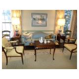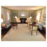 Home Furnishings: Friedman Brothers ornate mirror, outdoor iron furniture, Flex Steel micro fiber recliner, Smithsonian reproduction étagère, Baker drum table, Sherrill side table, Baldwin Acrosonic piano with bench, Brandt small game table, Queen Anne cherry pedestal tilt table, dual sided partner desk, cement life size Dalmatian statue, custom wool area rugs, sofas and wing chairs.