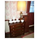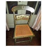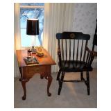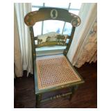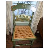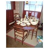 Hitchcock Furniture including clover lead drop leaf table with two leaves and six chairs, decorated four-drawer chest, drop leaf buffet, Andrew Jackson Hermitage limited edition painted chair, George Washington Mount Vernon limited edition painted chair, Thomas Jefferson Monticello limited edition painted chair and Adams Old House limited edition painted chair.
