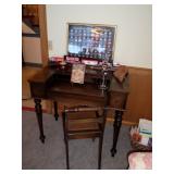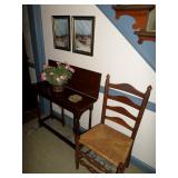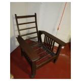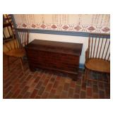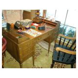Antiques including Circa. 1780 English Wright, Linton tall case clock, original painted decorated blanket chest, original painted foyer bench, mahogany spinet desk with chair and Morris oak reclining lounge chair.