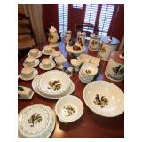 China: Copeland “Spode’s Jewel” and Poppy Trail “Provencial Rooster.”