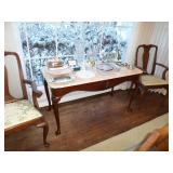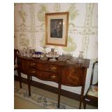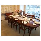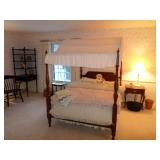 SALE HIGHLIGHTS: Henkel-Harris Furniture including a dining table with three leaves and eight chairs, serpentine front sideboard, John Hancock drop front secretary, Queen Anne coffee table with pull-out sides, pair of drop leaf side tables, pedestal side table, four poster queen bed, two side chests, two-drawer side table, dresser with mirror and double canopy bed.