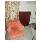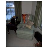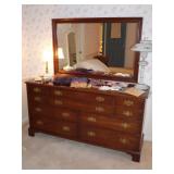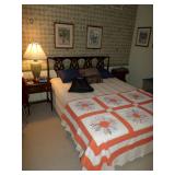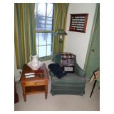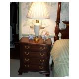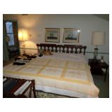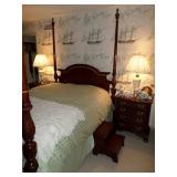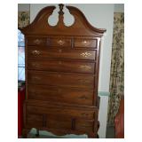 Statton Furniture including king bed, end tables, desk, high boy, upholstered chairs and foot stool.