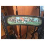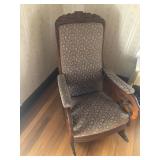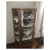 FURNITURE: Oak Bow front China Cabinet, 4pc. Mahogany Bedroom set, Mid Century Modern RCA Record player, Set of 4 Hitchcock style chairs, Carved Rocking chair, Early Cane Seat chair, Rose back antique chair, Sewing stand, Dressers, Leather Recliner, Couch, Living room furniture, Book shelf, Corner shelf, Gold gilded mirror, Floor lamps, End Tables, Computer chair, and much more!
