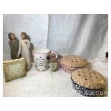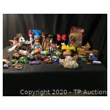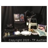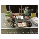 This is a mixed estate Auction Included in this auction: Asian dressing screen/ room divider, Baker book cabinet, Fiesta ware, Bauer pottery, Hickory Manufacturing Company fold out bar, Football helmets, football shoulder pads, Easter items, Depression glass, Bird figurines, Marilyn Monroe books and photos, Fairy figurines, Dolphin art and figurines, Wicca books, spell craft, palmistry, dolls, Barbie, Coca-Cola glasses, Native American pottery, Teddy Bears, Candle holders, Outdoor camping items, Field glasses by Bushnell, Konica 35 mm camera, ProMaster lens 80-200mm, Polaroid land camera, Nikon Touch 5, Brownie camera, Sure Shot camera, Poker all-in-one plug n play, Poker chips, Backgammon, Bridge, books, Jewelry, watches, rings, ephemera, baseball gloves, swim fins, purses, wallets, guiuine leather belt, Tekronics cart, vintage chairs, CD's, Movies, Playboy magazines, tapestry, Rockwell glasses, Jelly Jars, McDonalds collector glasses, Flintstone mugs, Monopoly glasses, See all our auctions at http://www.tpauctions.com |