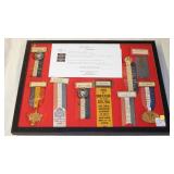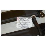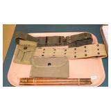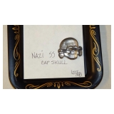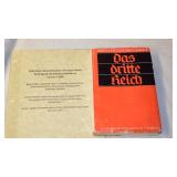 USM8, USM1942, USM1917. KNIFE SHEATH ONLY: BOYT USMC43 BOLO,. SIDE KNIVES WITH SHEATH: COLONIAL U.S.N. MK1, U.S. MILITARY ONTARIO SURVIVAL (1-1973), WWII EARA CASE, CATTARAUGUS #225Q, U.S.N. SEAL MK3 MODEL O. POCKET KNIVES: COLT "EXOTIC" (FOLDING) CT567, COLT "VOYAGER" (FOLDING) #29TXC, MARBLE SAFETY AXE CO. FOLDING KNIFE (MISSING HILT GUARD). AXES: (2)DOUBLE BIT ("CAYUGA" BY BARKE, ROSE & KIMBALL, TRUE TEMPER), FIREMAN'S WITH SHEATH STAMPED "LGFD" (LAKE GEORGE FIRE DEPT.), (3) SINGLE BIT: TRUE TEMPER FLINT EDGE KELLY WORKS, MARKED 3 1/2, TRUE TEMPER FLINT EDGE, (5)DOUBLE BIT: CRAFTSMAN "T.W.S.Co.", DORPIAN "THE QUALITY AXE", TRUE TEMPER AND (2) UN-MARKED. MACHETE WITH SHEATH: U.S. 1943 WWII SWI (BY ONTARIO), U.S. COLLINS 1944 WITH USMC SCABBARD DATED 1945. GERMAN MILITARY: WWII ARMY M43 FIELD CAP, 25 YR. 40 AND 50 YEAR NAZI FAITHFUL SERVICE MEDALS, NAZI SS MESS SPOON, GERMAN "DAS DRITTE REICH" BOOK SIGNED BY HEINRICH HIMMLER ON 1/7/32 (IN HIS FAVORITE GREEN INK) AND FROM HIS PRIVATE LIBRARY, WWII IRON CROSS, WWII NAZI SS CAP SKULL. U.S. MILITARY: ARMY LAN CAY M11 E.O.D. TOOL PACK POUCH ONLY, (5) SOLDIER PANORAMAS, WWII RED CROSS WAR FUND POSTER, WWII "M.D." WOOL BLANKET (U.S. ARMY c.1941), M1910 CARTRIDGE BELT, NAMED BRONZE STAR IN CASE, ARMY OFFICERS WWII VISOR CAP, COLLECTION OF SONS OF VETERANS CIVIL WAR INFANTRY SOLDIERS CONVENTION RIBBONS, ARMY AIR FORCE ITEMS (STERLING NAVIGATION WINGS, AVIATION CADET PROP & WINGS PINS, UNIFORM PINS & BUTTONS, PHOTOS, LOG BOOKS, ROUNDEL CAR EMBLEMS, RESEARCH DEVELOPMENT COMMAND EMBLEMS, 610th CAMEL AIR CONTROL WARNING PATCH, MANITOBA LICENSE PLATE, ETC.., TRENCH ART ITEMS. OTHER MILITARY: WWII BRITISH FLARE GUN, JAPANESE MEATBALL FLAG (33x57). OTHER ITEMS OF INTEREST: WHITE'S "TREASURE PRO" METAL DETECTOR, DEXIX WWII 1928 REPLICA THOMPSON SUB MACHINE GUN, NEW JOHNSON WOOL JACKET-SHIRT SIZE X-LARGE, CODET WOOL HUNTING PANTS (34x31). BOOKS: COLLIER'S PHOTO HISTORY OF THE EUROPEAN WAR c.1918, N.Y. TIMES WWI, WWI ILLUSTRATED MEMOIRS, FIREARM ASSEMBLIES. FRAMED PRINTS: SMITH & WESSON "AT BAY" BY G.W. PETERS c.1902, 1997 & 1998 FEDERAL DUCK STAMPS.
