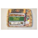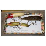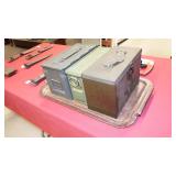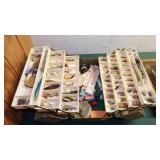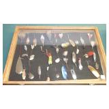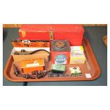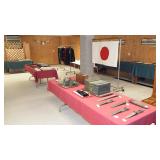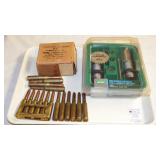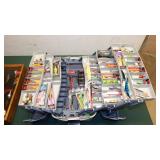 7.62x39, .38-55 WIN, .284 WIN., .45 AUTO, .38 SPECIAL. (4) U.S. ARMY BOXES: (3) 400 ROUNDS EACH .30 CAL M-2 AND (1) 1080 ROUNDS .30 CAL. M-1 CARBINE. (5)TACKLE BOXES FULL. LURES INCLUDING HEDDON, SOUTH BEND, CREEK CHUB: (3) GIANT PIKIES 2 WITH BOXES. DISPLAY CASE OF PFLUEGER LURES. REELS: FIN-NOR CLASSIC No.3 WITH EXTRA SPOOL, LARGE LOT OF REEL PARTS, LONG HANDLE FISH SPEAR, FLOOR MODEL FISHING ROD DISPLAY, HUMMINBIRD FISH FINDER. BAYONETS WITH SCABBARDS: US M-7 WITH M8A SCABBARD, M1956 SKL NORWEGIAN KRAG M1894 MODIFIED TO FIT U.S. M-1 CARBINE, DUTCH M-4 (MARKED E&F HORSTER-GERMANY), FAR EAST MODIFICATION OF M5 TO FIT M-1 CARBINE , U.S. M-4 BRENDAM WITH USM8A1 SCABBARD, U.S. M-4 TMN (TURNER MFG. CO.) WITH U.S.M8A1 SCABBARD, U.S. M-4 IMPERIAL WITH U.S. M8 SCABBARD, (2)