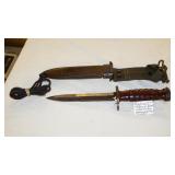 MODEL M1942 FOR M-1 GARAND 10" U.F.H. (ONE DATE 1943), U.S. 1913/1917 (DATED 1913) REMINGTON FOR US 1917 ENFIELD WITH 1943 TRANSITIONAL SCABBARD, RUSSIAN AKM-11. BAYONETS NO SCABBARD: (2)U.S. M1816. BAYONET SCABBARDS ONLY:(2)USM8A1,