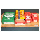 (2) RUGER 7 ROUND 9mm FOR EC9's, LC9, WINCHESTER 1907 .351 CAL., REMINGTON 760 .30-06, RUGER 10/22 (10 ROUND). BARRELS: REMINGTON 870 16 GA. 26" SLUG. TRAPS: ONEIDA NEWHOUSE #15 DBL. SPRING BEAR, VICTOR JUMPS, VICTOR LONG SPRING. RELOADING: LYMAN ELECTRONIC AUTOSCALE, ASSORTED BRASS INCLUDING 1000 ROUNDS .45 ACP PRIMED BRASS, LYMAN 310 RELOADING TOOL WITH .22 HORNET DIES & ACCESSORIES, PRIMERS, POWDER SCALE, ASSORTED RCBS 3 DIE SETS: .45 COLT, 7x57 MAUSER, 6.5mm x 55 SWEDISH MAUSER, (2) RCBS UNIFLOW POWDER MEASURES WITH STANDS (1 WITH POWDER TRICKLER 2 AND 1 WITH #9004 MEASURE CYLINDER ASSEMBLY. (4) 1911A U.S. ARMY HOLSTERS: (2)MILWAUKEE SADDLERY DATED 1942 & 1944, M1916 BY WARREN LEATHER GOODS, HUNTER CO. #33-30 SSM SHOULDER. SNOWSHOES. WOOD GUN STOCKS: M14, 1903 SPORTER, (5) M-1 CARBINE, (2) M-1 GARAND. GUN CASES. HARD SHELL GUN CASE FOR REMINGTON R25. AMMO: .303 BRIT., 7.62x38R NAGANT, 9mm LUGER, 12 GA., .45 COLT, 6.5x52 CARCANO, .30-06, .22LR, .243 WIN., .38 AUTO, 7mm REM MAG., .35 REM,