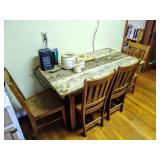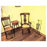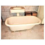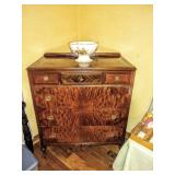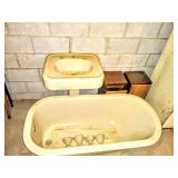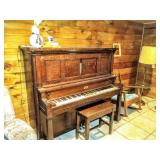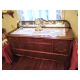 Furniture Chippendale Style Dining Table with 5 Chairs and 2 Leaves with Pads, Ladder Back Side Chair with Fiber Seat, Chippendale Style Buffet and Server With Mirror Back, Chippendale Style China Cabinet with Wood Overlay, Early American Mirrored Dresser, Twin Bed With Wood Headboard on Metal Frame, Handmade Nautical Style Chest of Drawers, Twin Bed with Wood Frame On Casters, Night Stand with Drawer and Storage, Hoosier Cabinet with Flour Sifter and Pull Out Enameled Worktop, Primitive Rustic Farm Table with 4 Chairs, Handmade Wooden Laundry Bin, 2 Captains Chairs, 2 Accent Chairs with Woven Fabric, 1970's End Table With Book and Magazine Storage, 1970's End Table with Book And Magazine Storage, Antique Lighted China Hutch With Tiger Striping And Casters, Farmhouse Rocker, Victorian Style Chair (Revamped Chamber Chair), Ornate Marble and Brass Floor Lamp, Claw Foot Sofa with Floral Pattern and 5 Pillows, Oval Wall Mirror with Wood Frame and Beveled Glass, Tiger Striped Mahogany Double Dresser with Fine Woodwork, Matching Bed Frame, Nightstand and Chest of Drawers, Entry Mirror with Wood Frame and Coat Hooks, Antique Dome Top Steamer Trunk with Insert and Handles Intact, Lane Cedar Chest, Beckwith Player Piano and Stool, Table Floor Lamp with Brass and Glass, 1980's Love Seat with Reclining Backs and Matching Lounge Chair, Emerson Bar Fridge, Computer Work Station with Storage Cabinet, 5 Drawer Antique Cabinet with casters, Bennington Banquet Chairs with Brown Vinyl Seats, Claw Foot Cast Iron Bathtub, Antique Cast Iron Enameled Pedestal Sink, Folding Card Table Chairs, Wood Rifle Cabinet, Late 1800's Primitive Rocking Chair and SO MUCH MORE!