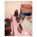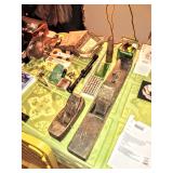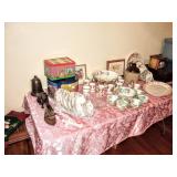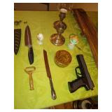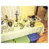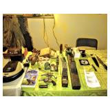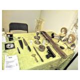 Collectibles Wind Chime with Stand, Vintage Clothing, Cast Iron Bell Door Stop, Cast Iron Pig Coin Bank, Antique Iron, Cast Iron Cow Doorstop, Bareuther Waldassen Bavarian Bowl Set, JS German Ceramic Punch Bowl Set, Victorian Salt and Pepper Shakers, Fine Bone China, Victorian Collectors Plates, Royal Munich, Limoges, Aynsley, Royal Copenhagen, Altmann Weldon, Royal Albert, Westmoreland, Versailles, Holiday Decor, Fenton Custard Glass, Early 1900s Usona Goodwin Dragonware Vases, Royal Rudorstadt Prussian Bowl, Converted Milk Glass and Pressed Glass Oil Lamp with Unique Shade, Wine Carafe with Stand And Glasses, Floating Glass Thermometer, Vintage and Handmade Linens, Quilts, Afghans, Throws, Doilies, Handkerchiefs, and more, Hair and Styling Accessories, Jeanette Jayhawks Vintage Stadium Blanket, High End Unused Makeup, Vintage 7 Up Brass Bottle Opener, 2 Antique Wood Planers, Vintage Keys, Bianchi Shoulder Holster for Colt Detective Special, Vintage Ammunition, Weaver Rimfire Rifle Scope, 40mm Artillery Shell, 6mm BB Gun, Weighted Sterling Silver Candle Holders, Tin Budweiser Salutes the Navy Sign,