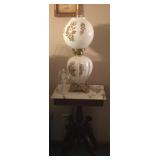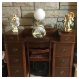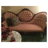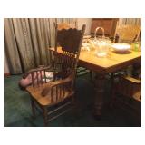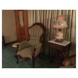 Antique Wrought Iron Bench and two matching chairs with fern design.Large oak curio cabinet,2 Oak dinettes ,Antique Oak European Secretary, Costume jewelry, victorian marble top tables,Mahogany Desk, Victorian sofa and chairs,Kitchen items, Household goods,Walnut 2door bookcase, Lamps and more.check back for more photos |