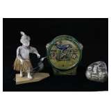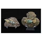 For now, we can provide photos of works by two exciting and highly original artists, as well as fine and costume jewelry, and antiques from a private collection of one of the artists.