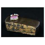 Margo was skilled in numerous media, and a prolific artist. Her mosaic tables were featured in Sunset Magazine in October 1951. Her ceramics were exhibited at the de Young Museum in 1953 and 1955. She developed highly skilled lost wax casting technique, as well as enamel making. She was keenly interested in gems and minerals, as well as the animal and plant kingdoms. She made original fine art jewelry, and also set antique pieces in modern settings. She crafted miniatures and ornamented boxes that combine minerals, gems, and animal, plant or abstract forms in silver, bronze or brass. The minerals and gems were often acquired during her US and worldwide travels.