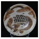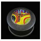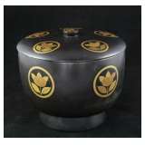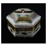 Margo Elberg received her art education at the San Francisco Art Institute, Mills College, and the College of Marin. In the 1940s and 50's, she collaborated with her husband Harold in the design firm Marrell Studios. They specialized in enamel on copper wares. A dinner service was featured in House Beautiful in June 1947. Their products were sold at Gump's and similar distinguished retail shops. In 1963, Harold decided to direct his energies to banking, and Margo continued as a solo artist for another five decades. She had also worked independently during the period of Marrell Studios.