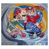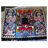 The tapestries are 100% wool and handmade. They are all original designs of Li Ruisheng and were crafted in his workshop in the 1980s. Many of the characters depict traditional Chinese legends.