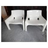Description: Authentic 1960's Vico Magistretti for Artemide, Set of Two White Vicario Lounge chairs - Designed by Vico Magistretti White Classic Modern Design - mid century modern fiberglass chairs MY RESEARCH